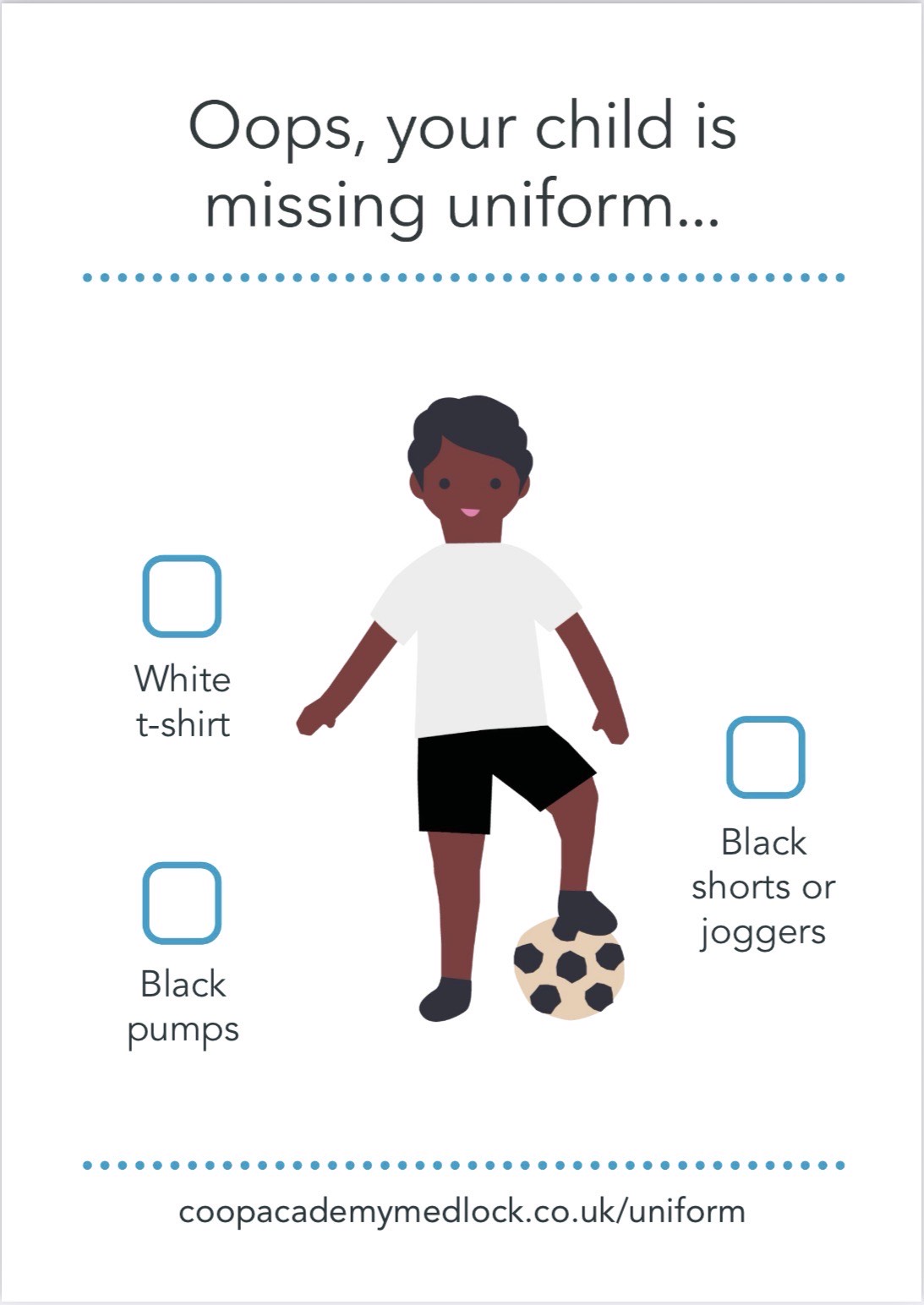 School uniform jumpers are dark / navy blue either with a ‘Co-op Academy Medlock’ badge or without. No other branding or pictures should be on the jumpers and again, no hooded jumpers or sweatshirts!