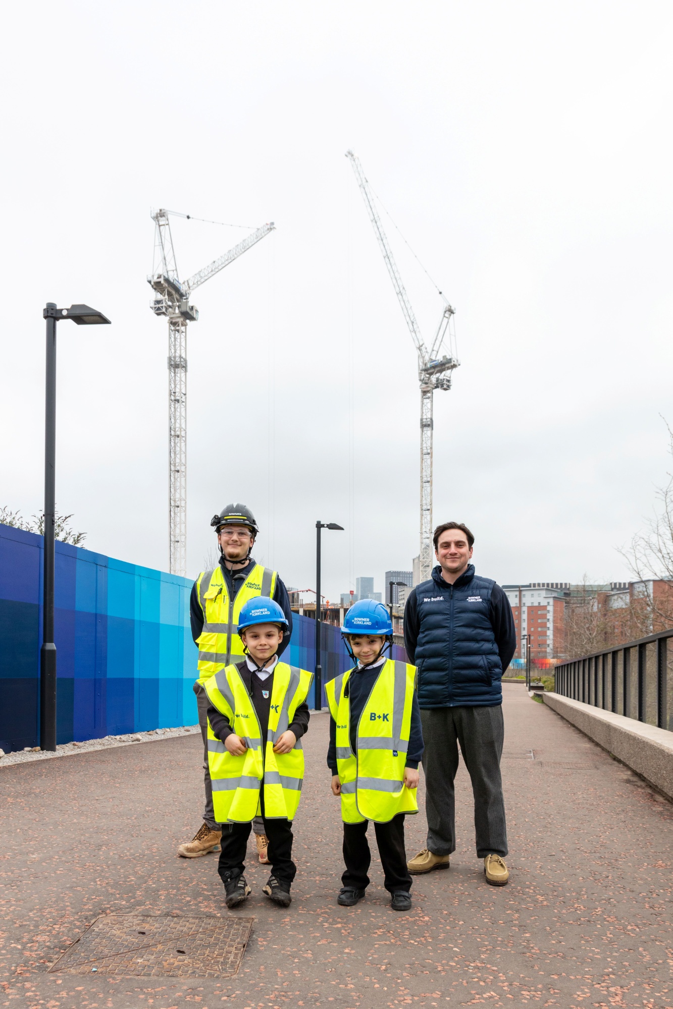 The kids were kitted out in their very own mini hard hats and high-vis jackets, transforming them into honorary site managers for the morning. They received a special safety briefing before heading out to the viewing platform to see Sir Lifts-A-Lot and Crane Austen hard at work in the sky.